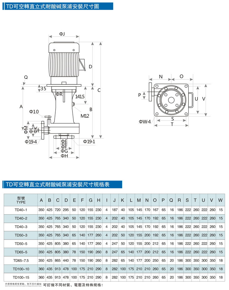 水泵是直立式設計,多元化的槽內槽外安裝,可根據客戶的需求安裝,因其無軸封設計,可耐空轉。